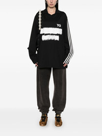 graphic-logo long-sleeves polo shirt Highlights - Black - Signature 3-stripes logo - Short side slits - When buying this unisex item, keep in mind that it is graded in standard men's sizing. Imported Composition Cotton 100% SIZE & FIT Model measurements Height 5 ft 10 in(1.78 m) Bust/Chest 33.46 in(85 cm) Hips 36.22 in(92 cm) Waist 23.22 in(59 cm) FittingInformation This unisex piece is designed for a loose fit whether you usually select women's or men's sizes Made from a midweight non-stretch fabric, this piece offers minimal elasticity when worn