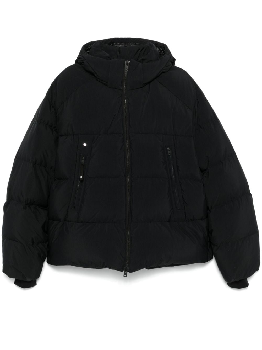 insulated puffer jacket Highlights - Black - Duck down - Signature primaloft® padding - Insulated design - Quilted - Front two-way zip fastening - Drawstring hood - Stand-up collar - Long sleeves - Ribbed cuffs - Front zip fastening pockets - Full lining - Straight hem Imported Composition Lining: Polyamide 100%, Recycled Polyester 100%, Duck Down 90%, Feather 10% Outer: Recycled Polyamide 100%, Polyamide 96%, Elastane 4%