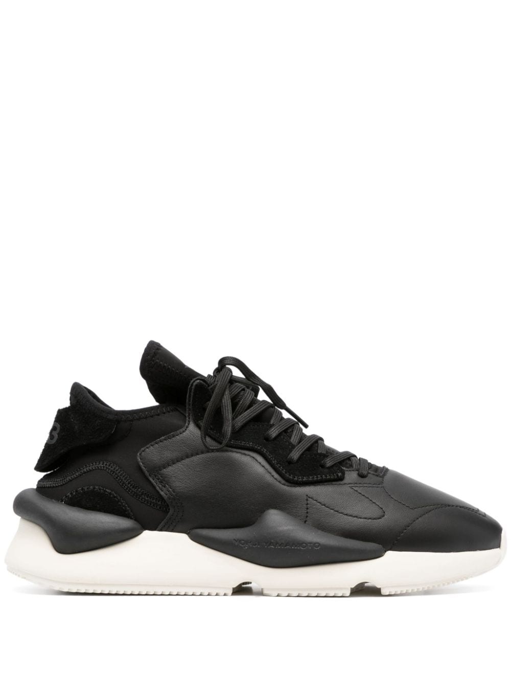 Kaiwa "Black/Off White" sneakers Defined by its 'strong examination of the blend of sport and style', Y-3 infuses footwear with avant-garde influences, as shown by this black iteration of the Kaiwa sneakers. Boasting a futuristic segmented sole, the pair is crafted from calf leather whilst featuring a sock-style ankle. Highlights - Black - Calf leather - Panelled design - Logo patch at the tongue - Logo patch to the rear - Round toe - Front lace-up fastening - Contrasting rubber sole Imported Composition Leather 100% SIZE & FIT Measurement HEEL 1.77 in(4.5 cm) Sole height 0.59 in(1.5 cm)