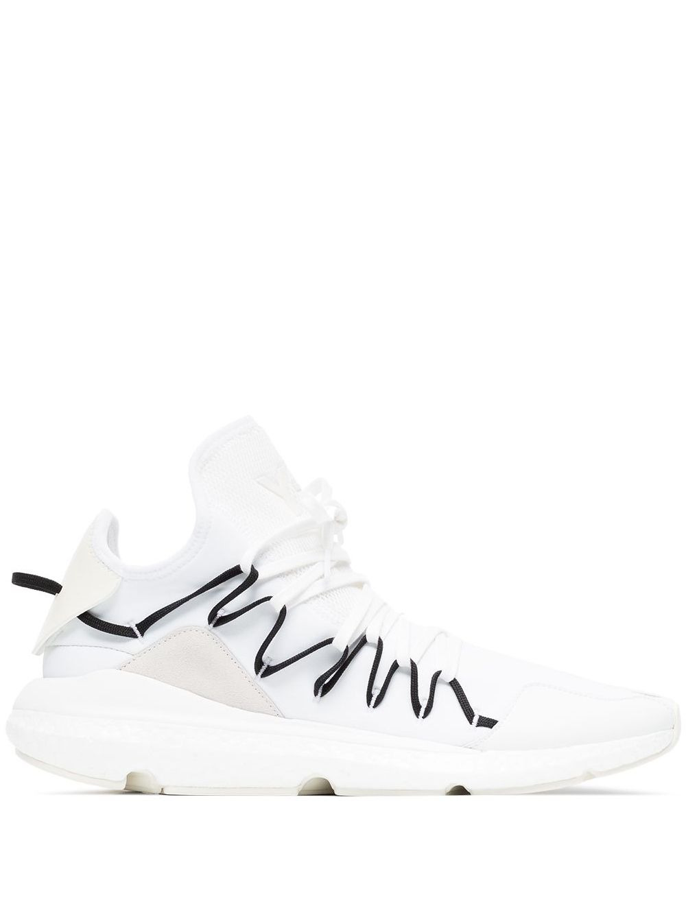 Kusari sneakers Y-3 succeeds in combining luxury activewear with technical detailing and contemporary design to create innovative and original sneakers. These white Kusari sneakers are a brand new style from the long-time collaboration between sports giant Adidas and Japanese fashion designer Yohji Yamamoto. These cotton and leather sneakers feature a lace-up front fastening, stretch mesh upper with leather overlays, a suede heel lining, Boost™ technology for energy return and cushioning, white printed branding to the tongue, and a white rubber outsole. Imported Composition Outer: Neoprene 100%, Calf Leather 100%, Polyester 100%, Suede 100% Lining: Polyamide 100%, Calf Leather 100% Sole: Rubber 100% SIZE & FIT Model measurements Height 6 ft 1 in(1.85 m) Bust/Chest 37.79 in(96 cm) Hips 37.4 in(95 cm) Waist 30.7 in(78 cm)