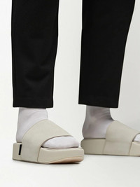 slip-on slides Set atop a flatform sole, these slide sandals from Y-3 are crafted from smooth leather and suede in an orbit grey hue. The pair is punctuated with the brand's logo patch to the rear. Highlights - Orbit grey - Leather/suede - Logo patch to the rear - Open toe - Slip-on style - Flatform sole Made in United Kingdom Composition Sole: Rubber 100% Outer: Leather 90%, Polyester 10% Lining: Leather 100% SIZE & FIT FittingInformation This piece fits large – take one size down Washing instructions Read Manufacturer Guidelines