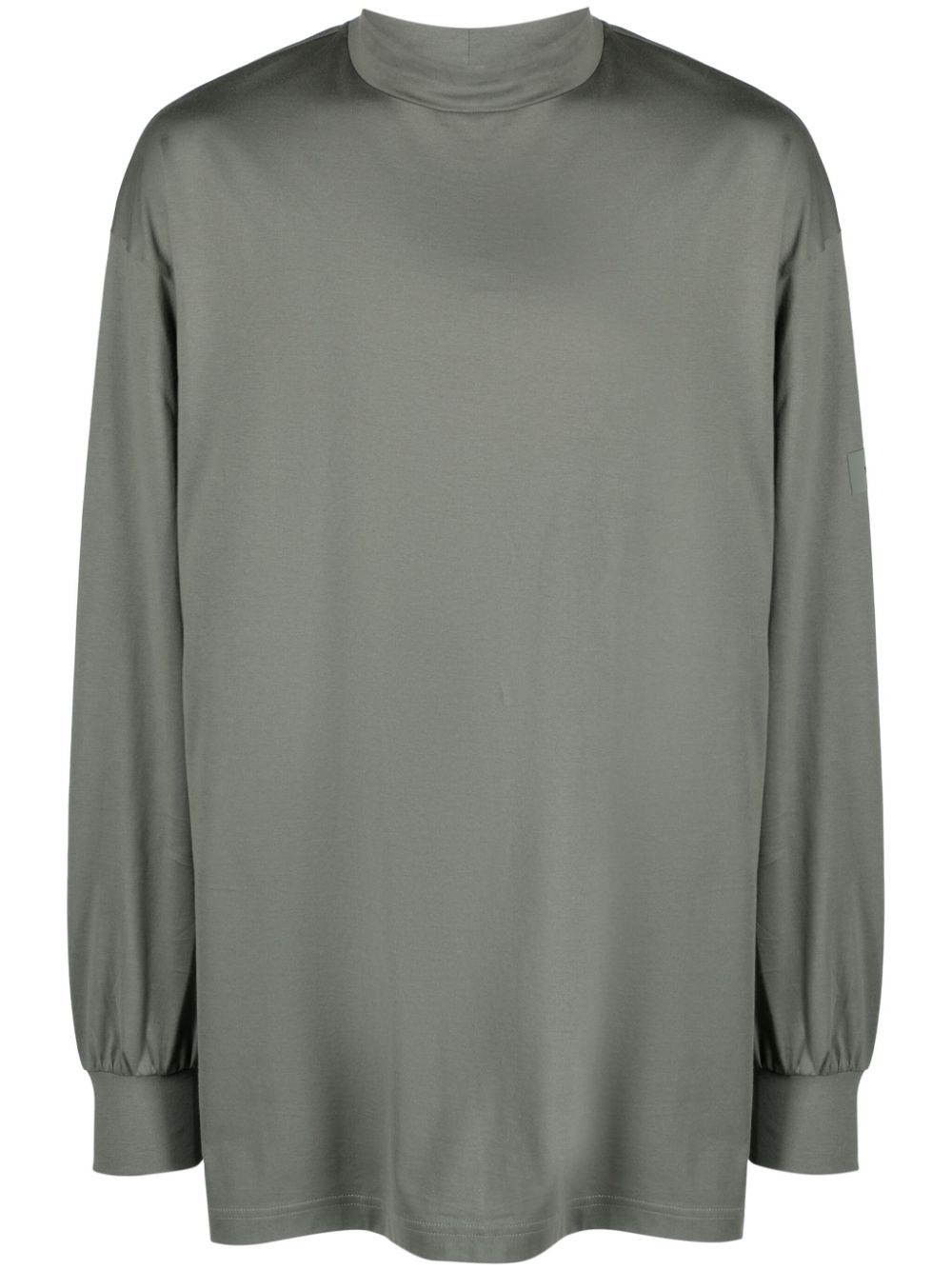 logo-print cotton T-shirt Y-3 says this green T-shirt ‘exudes sophistication though simplicity.’ It’s cut from cotton jersey to an unstructured mock-neck silhouette with narrow double-needle stitching and subtle logo print at the sleeve. Highlights - Green - Cotton - Jersey texture - Logo print at the arm - Mock neck - Drop shoulder - Long sleeves - Ribbed cuffs - Straight hem Imported Composition Cotton 100% SIZE & FIT Model measurements Height 6 ft 3 in(1.9 m) Bust/Chest 36.22 in(92 cm) Hips 37.4 in(95 cm) Waist 28.34 in(72 cm) FittingInformation Designed to be unstructured, offering a loose fit throughout Made from a midweight non-stretch fabric, this piece offers minimal elasticity when worn This piece fits true to size – take your usual size
