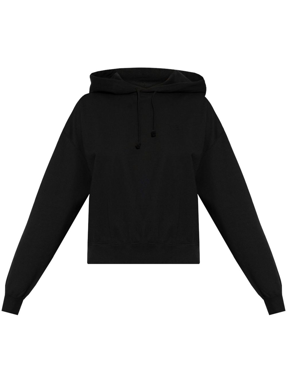 logo-print hoodie Highlights - Black - Slouchy hood - Long sleeves - Straight hem Imported Composition Cotton 80%, Polyester 20%