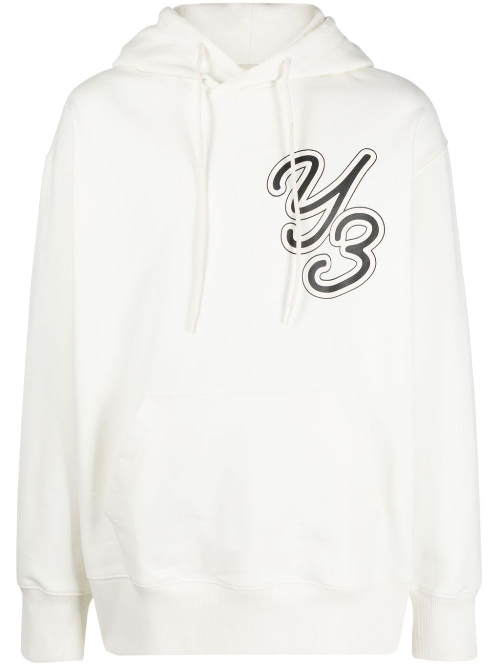 logo-print organic cotton hoodie Cut from soft organic cotton to a relaxed silhouette, this white hoodie from Y-3 speaks to the brand's penchant for streetwear-inspired designs. A seasonal lettering logo is placed at the chest for a recognisable look. Highlights - White/black - Organic cotton - Drawstring hood - Drop shoulder - Long sleeves - Logo print at the chest - Front pouch pocket - Ribbed cuffs and hem - When buying this unisex item, keep in mind that it is graded in standard men's sizing. Imported Composition Organic Cotton 100% SIZE & FIT Model measurements Height 5 ft 10 in(1.78 m) Bust/Chest 33.46 in(85 cm) Hips 36.22 in(92 cm) Waist 23.22 in(59 cm) FittingInformation This piece is unisex – if you usually select men's sizing expect a loose fit throughout; if you usually select women's sizes, expect an oversized fit Made with a midweight knit, this piece offers some stretch Washing instructions Machine Wash