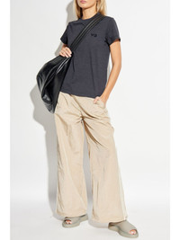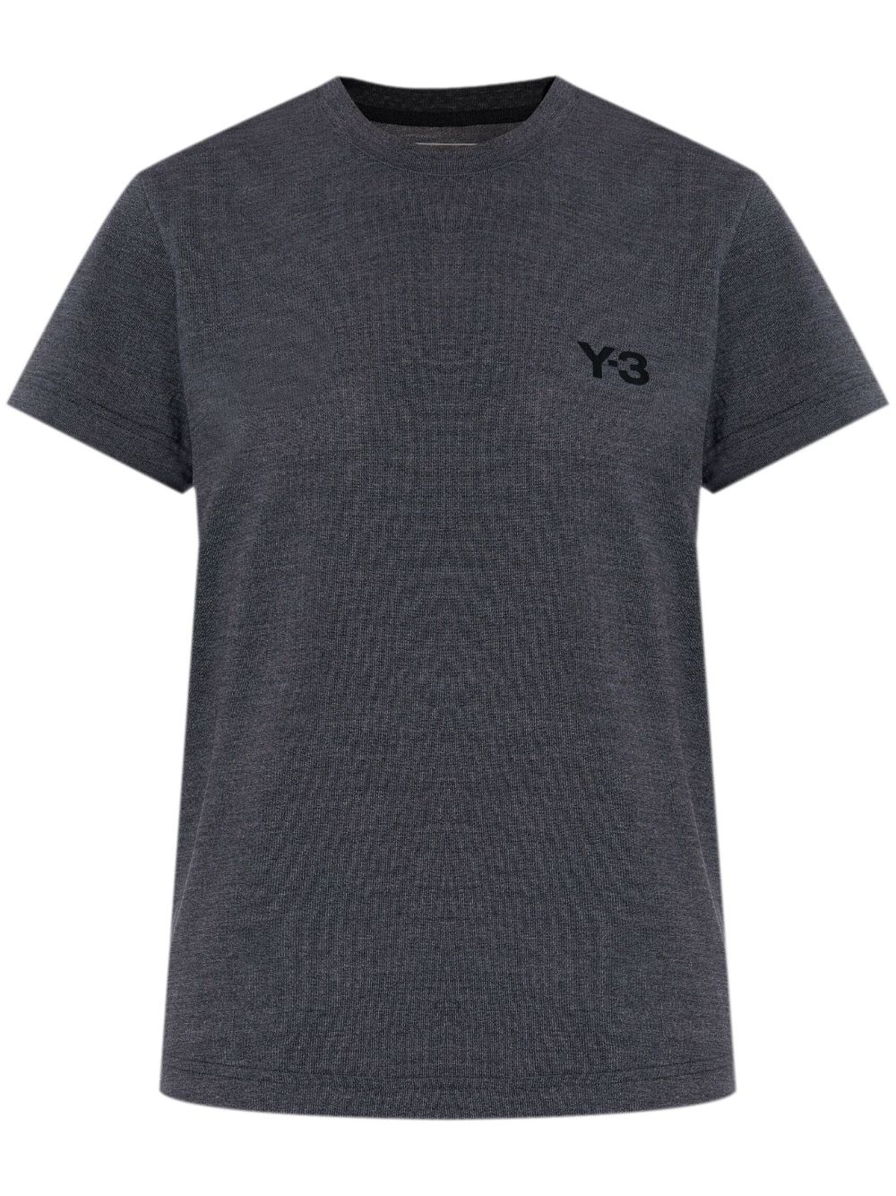 logo-print T-shirt Highlights - Black - Jersey texture - Melange effect - Crew neck - Short sleeves - Logo print at the chest - Straight hem Imported Composition Polyester 77%, Wool 23%