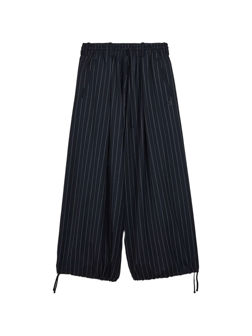 pinstripe-pattern trousers Highlights - Black - Pinstripe pattern - Drawstring fastening - Side pockets Imported Composition Fabric 100% Washing instructions Read Manufacturer Guidelines