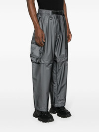 convertible GORE-TEX cargo trousers A fusion of streetwear and utility styles, these black Y-3 trousers are inspired by nature. They’re cut to an exaggerated cargo silhouette from waterproof GORE-TEX® ripstop with sealed seams and press-studs at the knees to convert them to shorts. The integrated buckled belt and D-ring at the waist reinforce their functionality. Highlights - Black - Waterproof gore-tex® material - Ripstop texture - Windproof - Taped seams - Elasticated waistband - Detachable and adjustable waist belt - Belt loops - D-ring findings - Two side zip-fastening pockets - Two side cargo pockets - Adjustable lengths with snap buttons - Press stud-fastening side vents - Drawstring hem - Rear patch pocket - Tapered leg - Concealed front zip fastening - Concealed front press-stud fastening Imported Composition Outer: Polytetrafluoroethylene (PTFE) 100%, Polyamide 100% Lining: Polyamide 100% SIZE & FIT Model measurements Height 6 ft 2 in(1.89 m) Bust/Chest 39.76 in(101 cm) Hips 37.4 in(95 cm) Waist 29.92 in(76 cm) Measurement FRONT RISE 15.74 in(40 cm) INSIDE LEG 25.98 in(66 cm) HIPS 45.66 in(116 cm) FittingInformation Designed for a tapered leg, offering a loose unrestricted fit over the leg with a closer fit towards the ankle The belt offers adjustability for fitted preferences Made from a lightweight non-stretch fabric This piece fits true to size – take your usual size Washing instructions Machine Wash