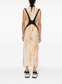 Rust Dye dress Highlights - Black/orange/off-white - All-over graphic print - V-neck - Sleeveless - Side slit - Straight hem Imported Composition Viscose 85%, Polyester 15% SIZE & FIT Model measurements Height 5 ft 10 in(1.78 m) Bust/Chest 33.07 in(84 cm) Hips 36.61 in(93 cm) Waist 24.8 in(63 cm) FittingInformation Designed for a slim fit that sits just away from the body offering a close yet comfortable fit Made from a midweight non-stretch fabric This piece fits true to size – take your usual size