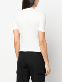 short-sleeve organic-cotton top Highlights - White - Organic cotton - Round neck - Short sleeves - Straight hem Imported Composition Organic Cotton 100% SIZE & FIT Model measurements Height 5 ft 11 in(1.8 m) Bust/Chest 33.07 in(84 cm) Hips 37.4 in(95 cm) Waist 25.19 in(64 cm) Measurement LENGTH 20.07 in(51 cm) BUST 29.92 in(76 cm) FittingInformation This piece fits true to size. We recommend you get your regular size Cut for a close fit Made with a mid-weight fabric Washing instructions Hand Wash