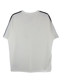 three-stripe short-sleeve t-shirt Highlights - Off-white - Short sleeves - Crew neck - Three black stripes - Raglan sleeves Imported Composition Lyocell 63%, Wool Blend 16%, Nylon 16%, Spandex/Elastane 5% Washing instructions Read Manufacturer Guidelines