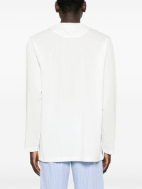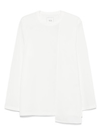 U Prem T-shirt Highlights - White - Asymmetric design - Crew neck - Long sleeves Imported Composition Cotton 55%, Recycled Polyester 45% SIZE & FIT Model measurements Height 5 ft 10 in(1.79 m) Bust/Chest 35.43 in(90 cm) Hips 35.03 in(89 cm) Waist 25.19 in(64 cm) FittingInformation This piece is unisex – if you usually select men's sizing expect a loose fit throughout; if you usually select women's sizes, expect an oversized fit Made from a midweight non-stretch fabric, this piece offers minimal elasticity when worn