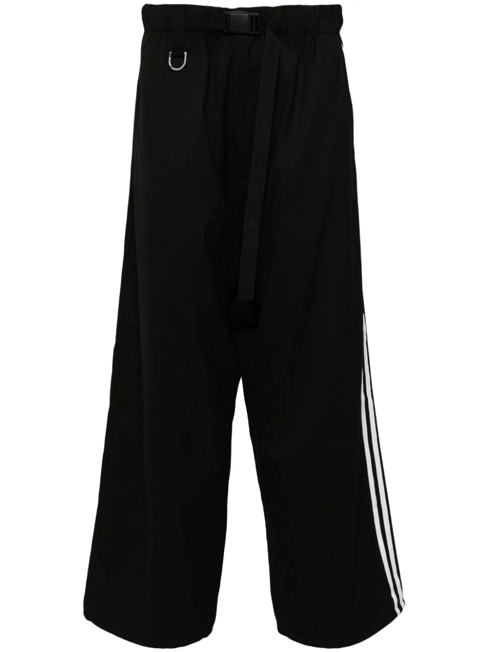 x Adidas 3-stripes logo trousers Highlights - Black - Cotton - Twill weave - Detachable waist belt - Front press-stud and zip fastening - Two side welt pockets - Signature 3-stripes logo - Logo print to the rear - Two rear welt pockets - Drop crotch - Wide leg Imported Composition Outer: Polyester 70%, Wool 30% Lining: Cotton 100% SIZE & FIT Model measurements Height 6 ft 1 in(1.86 m) Bust/Chest 36.61 in(93 cm) Hips 37 in(94 cm) Waist 28.74 in(73 cm) FittingInformation Designed with a wide leg, offering a loose and roomy fit The belt offers adjustability for fitted preferences Made from a midweight non-stretch fabric