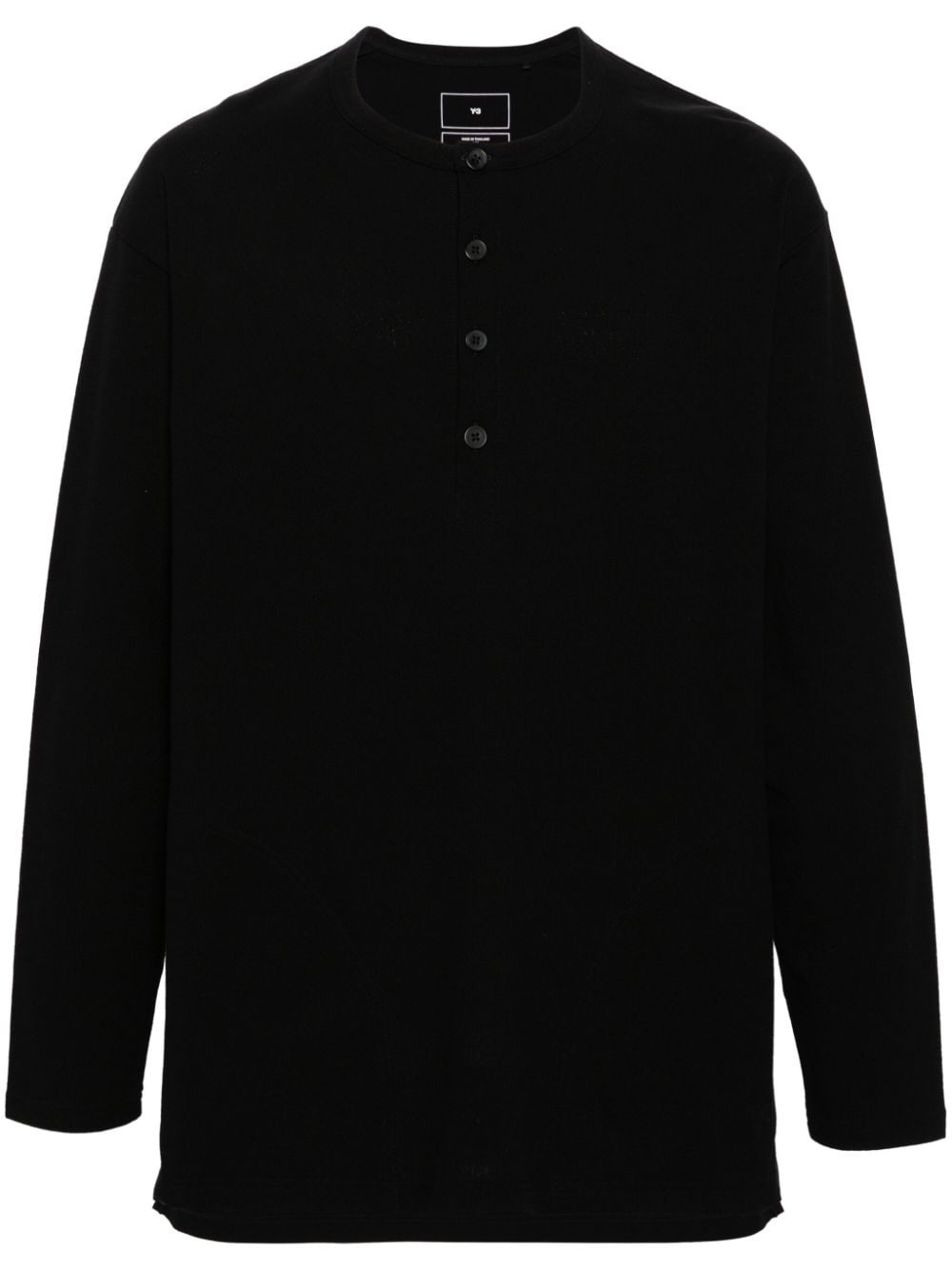 x Adidas crew-neck T-shirt Highlights - Black - Cotton - Crepe texture - Applique logo - Crew neck - Front button placket - Drop shoulder - Long sleeves - Two side welt pockets - Short side slits - High-low hem - When buying this unisex item, keep in mind that it is graded in standard men's sizing. Imported Composition Cotton 100% SIZE & FIT Model measurements Height 5 ft 10 in(1.78 m) Bust/Chest 33.07 in(84 cm) Hips 36.61 in(93 cm) Waist 24.8 in(63 cm) FittingInformation This piece is unisex – if you usually select men's sizing expect a loose fit throughout; if you usually select women's sizes, expect an oversized fit Made from a midweight non-stretch fabric, this piece offers minimal elasticity when worn This piece fits true to size – take your usual size