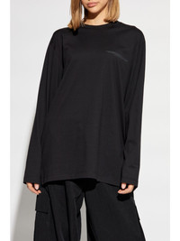 x Adidas logo-print T-shirt Highlights - Black - Cotton - Jersey texture - Text print - Logo print to the rear - Crew neck - Drop shoulder - Long sleeves - Straight hem - When buying this unisex item, keep in mind that it is graded in standard men's sizing. Imported Composition Cotton 100% SIZE & FIT Measurement CHEST 46.45 in(118 cm) SLEEVE LENGTH 25.59 in(65 cm) LENGTH 30.31 in(77 cm) Shoulder Width 19.68 in(50 cm)