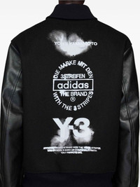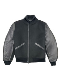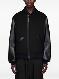 x Yohji Yamamoto ribbed bomber jacket Highlights - Black - Inside pocket - Two side pockets - Ribbed collar - Zip closure Imported Composition Recycled Polyester 60%, Wool 40% Washing instructions Read Manufacturer Guidelines