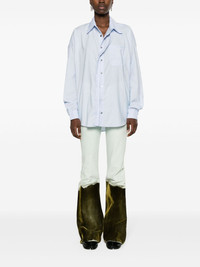 asymmetric cotton-blend shirt Highlights - Light blue - Cotton blend - Asymmetric design - Panelled design - Embroidered logo at the chest - Seam detailing - Spread collar - Front button fastening - Drop shoulder - Long sleeves - Buttoned cuffs - Chest patch pocket - Rear curved hem - When buying this unisex item, keep in mind that it is graded in standard men's sizing. Imported Composition Cotton 83%, Polyamide 17% SIZE & FIT Model measurements Height 5 ft 11 in(1.8 m) Bust/Chest 32.67 in(83 cm) Hips 36.22 in(92 cm) Waist 24.4 in(62 cm) FittingInformation This unisex piece is designed for a loose fit whether you usually select women's or men's sizes Made from a midweight non-stretch fabric Washing instructions Machine Wash