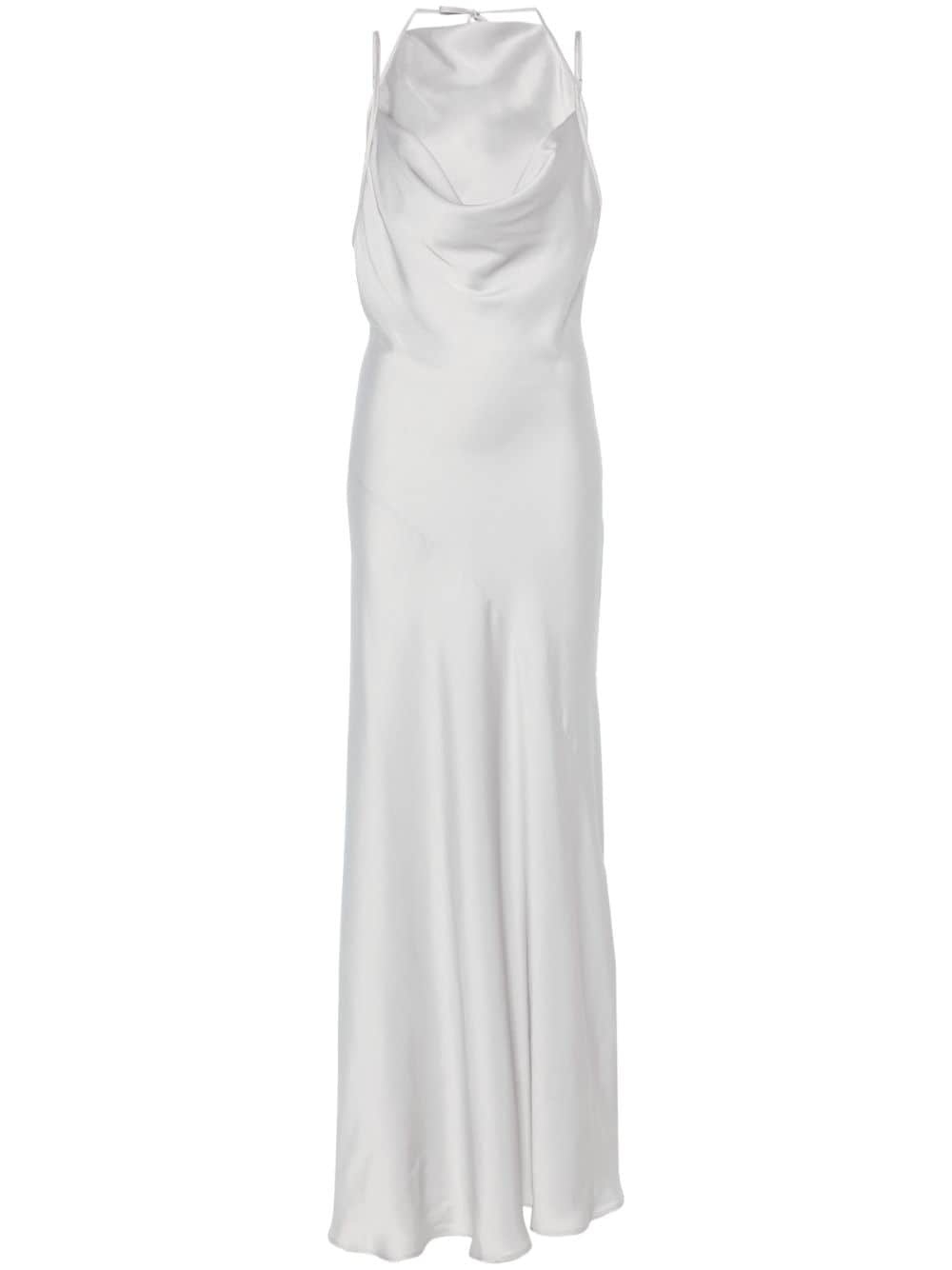 cowl-neck maxi dress Highlights - Grey - Recycled polyester - Textured finish - Concealed side zip fastening - Cowl neck - Adjustable spaghetti straps - Rear criss-cross straps - Straight hem - Long length Imported Composition Recycled Polyester 100% SIZE & FIT Model measurements Height 5 ft 10 in(1.78 m) Bust/Chest 33.46 in(85 cm) Hips 36.22 in(92 cm) Waist 23.22 in(59 cm) FittingInformation Designed for a close fit throughout The adjustable shoulder straps allow for a preferred fit when worn Made from a midweight non-stretch fabric