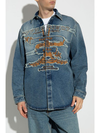 distressed denim shirt Highlights - Blue - Cotton - Denim - Distressed effect - Ripped detailing - Embroidered logo to the front - Concealed front button fastening - Classic collar - Logo patch to the rear - Long sleeves - Buttoned cuffs - Curved hem Imported Composition Cotton 100%