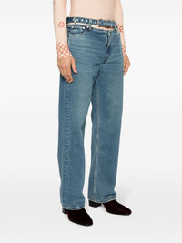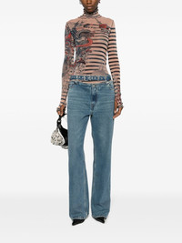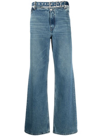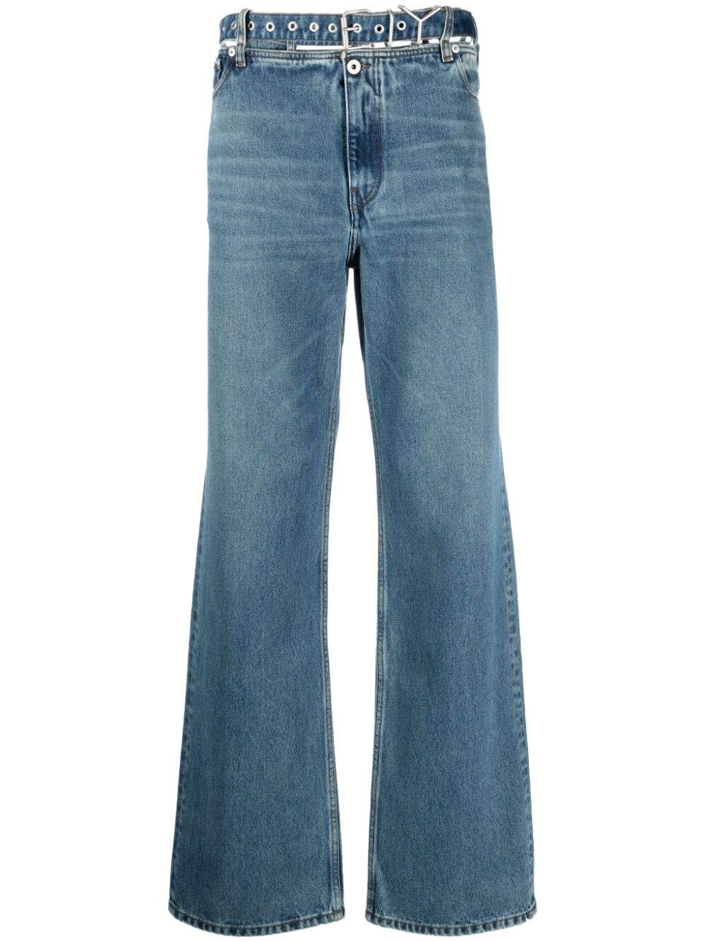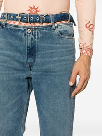 Evergreen mid-rise wide-leg jeans Y/PROJECT pairs classic materials with modern silhouettes for AW23. An example, these jeans are imagined in a vintage-blue denim wash with a cut-out at the waist for a contemporary touch. Highlights - Indigo blue - Organic cotton - Whiskering effect - Silver-tone logo plaque - Cut-out detailing - Belted waist - Mid-rise - Belt loops - Wide leg - Concealed fly and button fastening - Classic five pockets - Straight hem - When buying this unisex item, keep in mind that it is graded in standard men's sizing Imported Composition Organic Cotton 100% SIZE & FIT Model measurements Height 5 ft 10 in(1.78 m) Bust/Chest 31.49 in(80 cm) Hips 37 in(94 cm) Waist 23.62 in(60 cm)