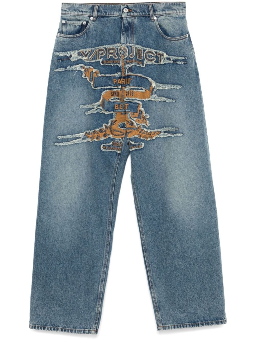 Evergreen Paris' Best jeans Highlights - Medium blue - Organic cotton - Denim - Y/project paris' best patch to the front - Front button and zip fastening - Belt loops - Classic five pockets - Distressed effect - Logo patch to the rear - Wide leg - When buying this unisex item, keep in mind that it is graded in standard men's sizing. Imported Composition Organic Cotton 100% SIZE & FIT Model measurements Height 5 ft 10 in(1.77 m) Bust/Chest 33.07 in(84 cm) Hips 37 in(94 cm) Waist 24.8 in(63 cm) FittingInformation This piece is unisex and is designed with a wide-leg, whether you usually select women's or men's sizes Sturdy and hard-wearing, this denim piece offers no stretch Measurement INSIDE LEG 33.46 in(85 cm) FRONT RISE 12.59 in(32 cm) WAIST 29.52 in(75 cm) HIPS 30.31 in(77 cm) Washing instructions Machine Wash
