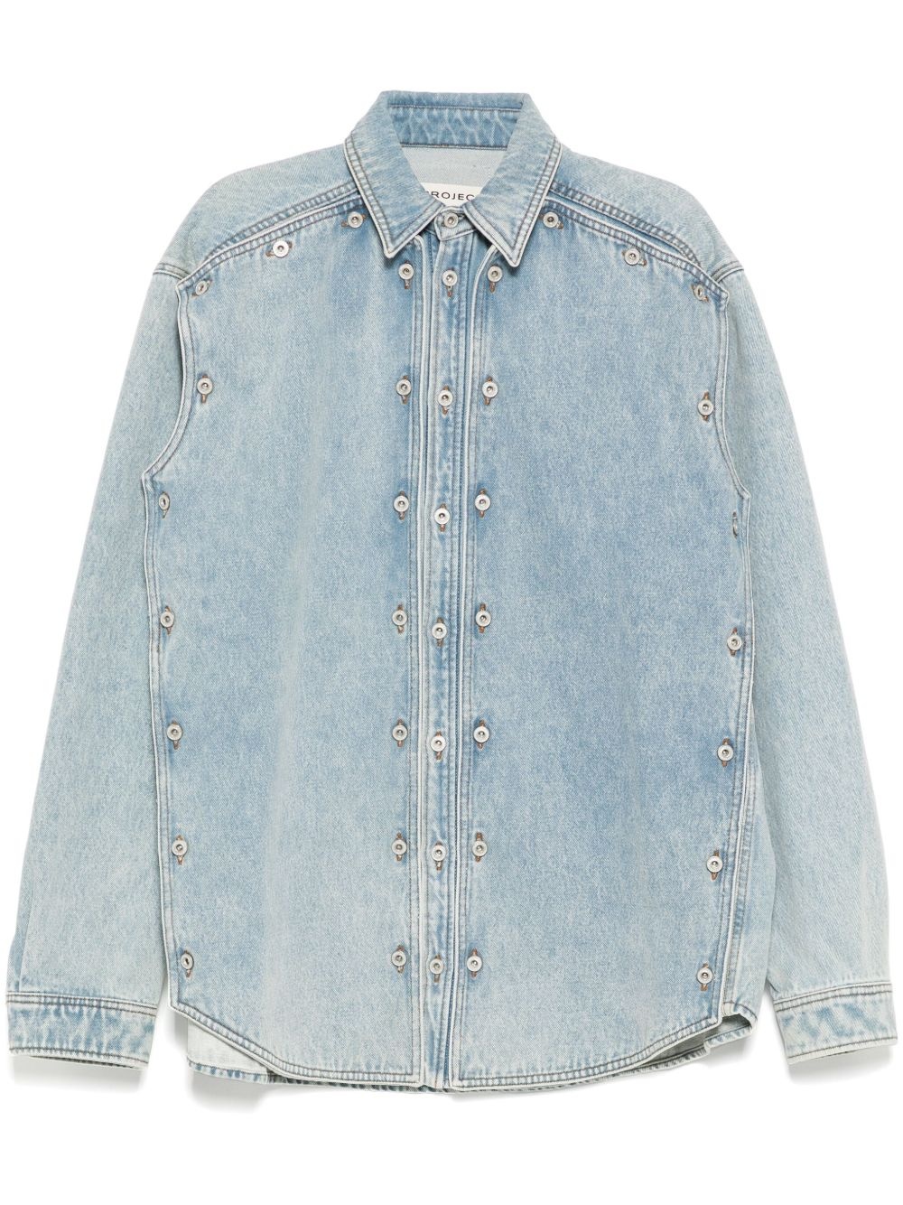 Evergreen shirt Highlights - Ice blue - Front button fastening - Detachable panels Imported Composition Outer: Organic Cotton 100% SIZE & FIT Model measurements Height 6 ft 2 in(1.87 m) Bust/Chest 33.07 in(84 cm) Hips 35.43 in(90 cm) Waist 26.77 in(68 cm) Measurement CHEST 51.96 in(132 cm) WAIST 51.96 in(132 cm) FittingInformation Designed for an oversized fit, offering additional room throughout Constructed with additional length on the sleeve Sturdy and hard-wearing, this denim piece offers no stretch