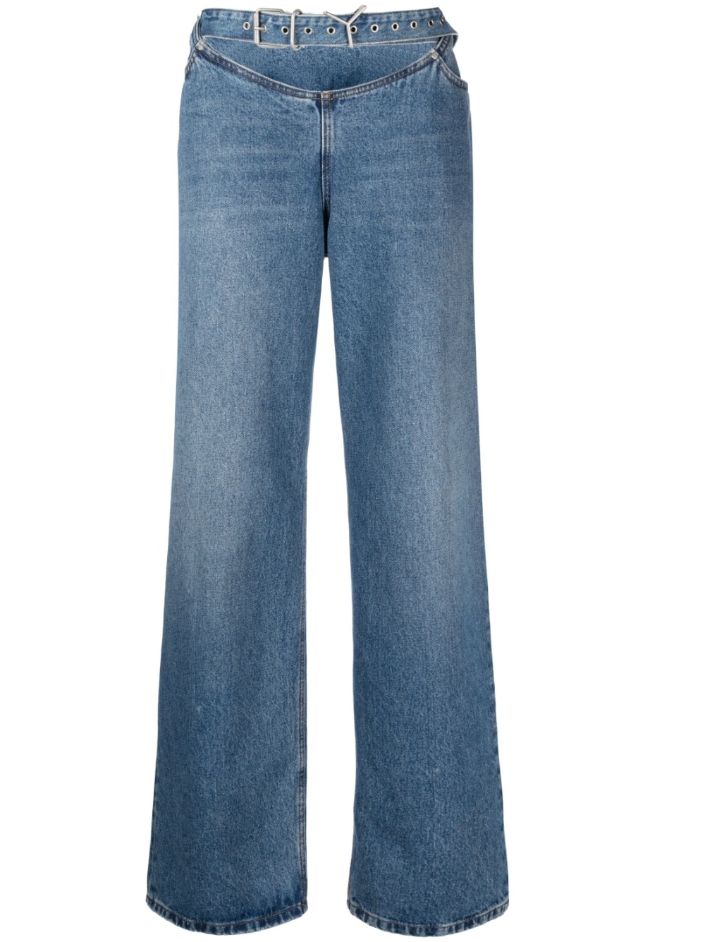 low-rise loose-fit jeans Cut to a low-rise silhouette, these faded blue jeans from Y/PROJECT combine a cut-out section at the waist with a logo buckle fastening. Highlights - Blue - Cotton - Denim - Faded effect - Cut-out detailing - Belted waist - Logo buckle fastening - Straight leg - Classic five pockets Made in Italy Composition Cotton 100% SIZE & FIT Model measurements Height 6 ft 2 in(1.87 m) Bust/Chest 37 in(94 cm) Hips 33.85 in(86 cm) Waist 27.95 in(71 cm) FittingInformation Designed with a straight leg, these jeans allow for an unrestricted and comfortable fit over the leg The belt offers adjustability for fitted preferences Sturdy and hard-wearing, this denim piece offers no stretch This piece fits true to size – take your usual size Washing instructions Dry Clean Only
