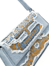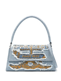 Paris' Best denim shoulder bag Highlights - Ice blue/white/dark yellow - Washed denim - Distressed effect - Frayed detailing - Embroidered logo to the front - Embroidered motif - Contrast stitching - Silver-tone hardware - Internal logo patch - Foldover top with magnetic fastening - Single rolled top handle - Detachable shoulder strap - Main compartment - Internal patch pocket - Full lining - This piece comes complete with a protective dust bag. Made in Italy Composition Body: Calf Leather 100% SIZE & FIT Model measurements Height 5 ft 9 in(1.75 m) Bust/Chest 34.64 in(88 cm) Hips 36.61 in(93 cm) Waist 26.37 in(67 cm) Measurement DEPTH 2.36 in(6 cm) HANDLE 19.68 in(50 cm) HEIGHT 6.69 in(17 cm) STRAP 43.3 in(110 cm) WIDTH 12 in(30.5 cm)
