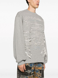 Paris' Best distressed cotton sweatshirt Cut from cotton to a relaxed and oversized silhouette, this Y/Project sweatshirt features distressed embroidery on the front. Highlights - Light grey - Cotton - Jersey texture - Distressed effect - Embroidered motif - Crew neck - Long sleeves - Ribbed cuffs and hem - When buying this unisex item, keep in mind that it is graded in standard men's sizing. Imported Composition Cotton 100% SIZE & FIT Model measurements Height 5 ft 10 in(1.78 m) Bust/Chest 33.07 in(84 cm) Hips 36.61 in(93 cm) Waist 24.8 in(63 cm) FittingInformation This unisex piece is designed for a loose fit whether you usually select women's or men's sizes Made with a midweight knit, this piece offers some stretch Washing instructions Machine Wash