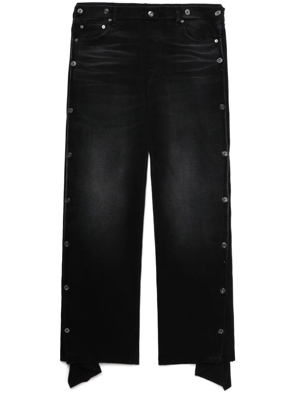 wide-leg jeans Highlights - Black - Cotton - Denim - Faded effect - Layered design - Concealed fly and button fastening - Side button fastening slits - Adjustable front button fastening - Belt loops - Classic five pockets - Logo patch to the rear - Removable lining - Straight leg Imported Composition Lining: Polyamide 86%, Elastane 14% Outer: Cotton 100%