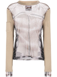 x Jean Paul Gaultier Trompe L'Oeil top Designed in collaboration with Jean Paul Gaultier, Y/Project creates an avant-garde top with an illusory print of the brand's Ruffle Necklace cardigan. Ribbed panelling finishes the design. Highlights - Light beige - Semi-sheer construction - Crew neck - Long sleeves Imported Composition Body: Polyamide 100% SIZE & FIT Model measurements Height 5 ft 10 in(1.78 m) Bust/Chest 30.31 in(77 cm) Hips 34.64 in(88 cm) Waist 24.01 in(61 cm) FittingInformation Designed for a slim fit that sits just away from the body offering a close yet comfortable fit Made with a midweight knit, this piece offers some stretch This piece fits true to size – take your usual size