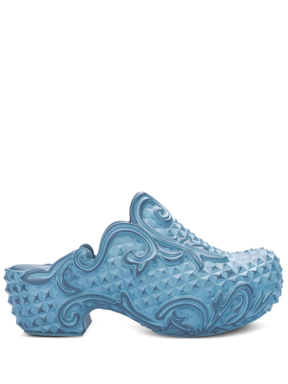 x Melissa Court clogs Highlights - Light blue - Embossed detail - Round toe - Slip-on style - Branded insole - Mid block heel - Platform sole Imported Composition Sole: Rubber 100% Lining: Rubber 100% Outer: Rubber 100% SIZE & FIT Measurement HEEL 2.36 in(6 cm) PLATFORM 1.77 in(4.5 cm)