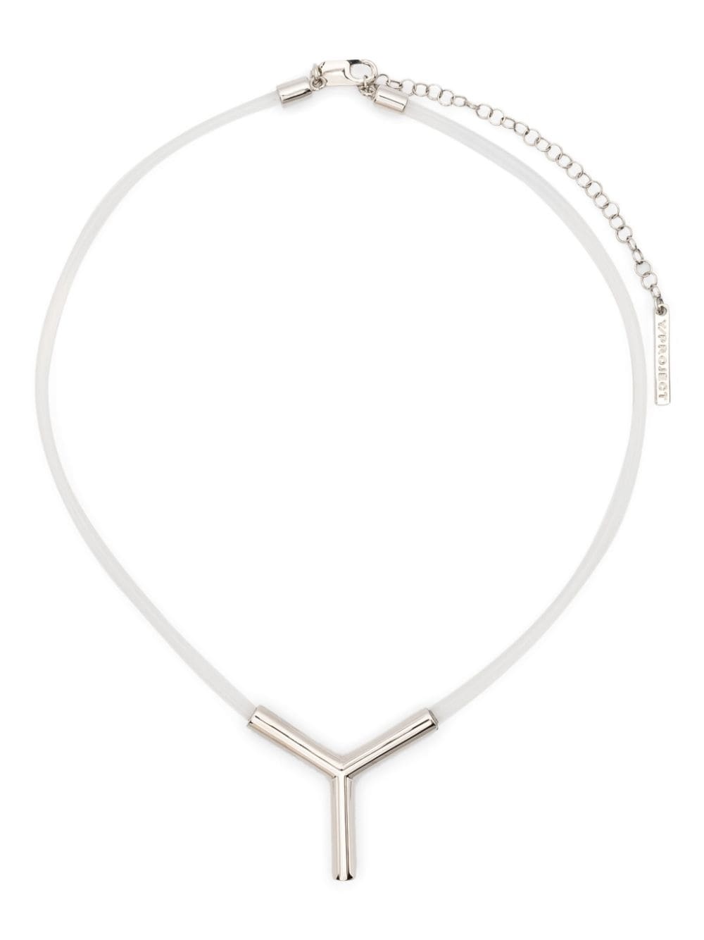Y-shaped pendant necklace Highlights - White/silver tone - Transparent design - Y-shaped pendant - Adjustable fit - Logo-engraved silver-tone hardware - Lobster claw fastening Made in Italy SIZE & FIT Model measurements Height 5 ft 10 in(1.77 m) Bust/Chest 31.49 in(80 cm) Hips 35.82 in(91 cm) Waist 25.98 in(66 cm) Measurement Length when open 17.71 in(45 cm) Minimum Length 14.96 in(38 cm) PENDANT LENGTH 0.98 in(2.5 cm) PENDANT WIDTH 1.49 in(3.8 cm)