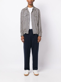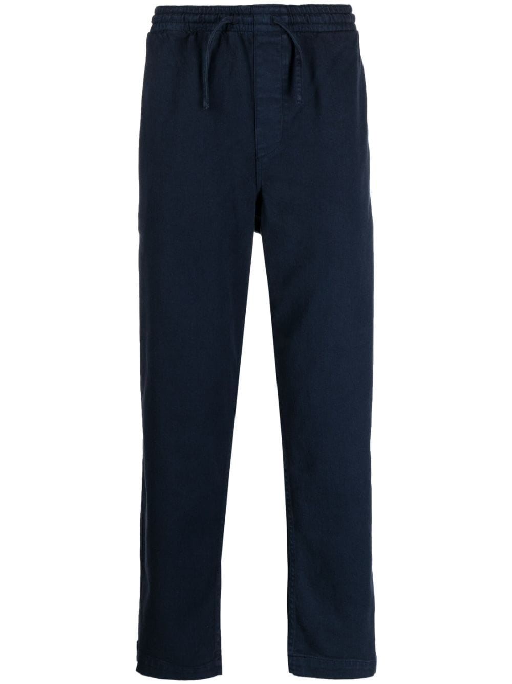 Alva drawstring skater trousers Highlights - Navy blue - Organic cotton blend - Elasticated waistband - Tapered leg - Drawstring fastening waist - Rear patch pocket Imported Composition Organic Cotton 97%, Elastane 3% SIZE & FIT Model measurements Height 6 ft 3 in(1.9 m) Bust/Chest 35.03 in(89 cm) Hips 36.61 in(93 cm) Waist 29.13 in(74 cm) FittingInformation Designed for a relaxed tapered leg, allowing a comfortable loose fit above the knee with a closer fit towards the calves Adjust this piece’s waistband to your preference using the drawstring Made from a midweight non-stretch fabric, this piece offers minimal elasticity when worn This piece fits true to size – take your usual size