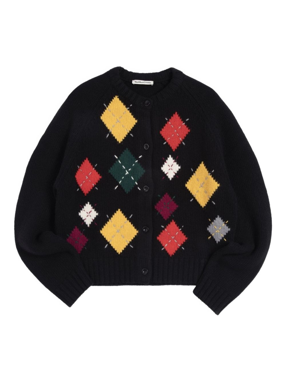 Atomic argyle cardigan Highlights - Black - Argyle pattern - Button fastening - Round neck - Long sleeves Imported Composition Wool 80%, Nylon 20% Washing instructions Read Manufacturer Guidelines