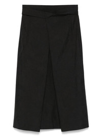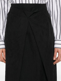 George midi skirt Highlights - Black - Front button placket - Rear tie fastening - Two side slit pockets Imported Composition Polyester 100% SIZE & FIT Model measurements Height 5 ft 9 in(1.76 m) Bust/Chest 31.88 in(81 cm) Hips 35.43 in(90 cm) Waist 24.8 in(63 cm) FittingInformation Designed with an asymmetric hem, this skirt is intended to be worn just below the waist Made from a midweight non-stretch fabric