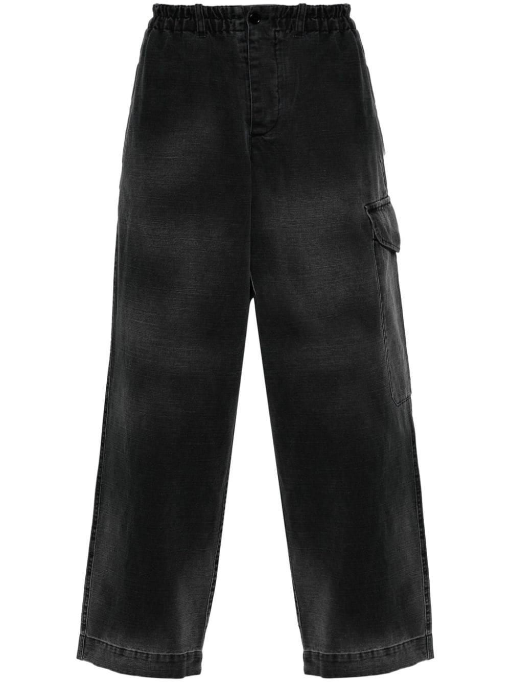 Military tapered jeans Highlights - Black - Cotton-linen blend - Denim - Tapered leg - Belt loops - Elasticated waistband - Two side slit pockets - Side cargo pocket - Rear flap pocket - Button fly fastening Imported Composition Cotton 58%, Linen/Flax 42% SIZE & FIT Model measurements Height 6 ft 2 in(1.87 m) Bust/Chest 38.18 in(97 cm) Hips 36.61 in(93 cm) Waist 29.13 in(74 cm) FittingInformation Designed for a tapered leg, these jeans allow a loose unrestricted fit over the leg with a closer fit towards the ankle Adjust this piece’s waistband to your preference using the drawstring Constructed from stretch denim, this piece offers a stretch fit with durability This piece fits true to size – take your usual size