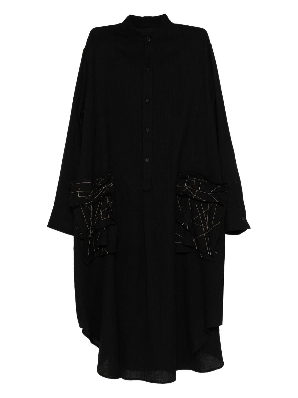A-embroidered dress Highlights - Black - Front button fastening - Two side patch pockets - Buttoned-cuff sleeves Imported Composition Wool 100% SIZE & FIT Model measurements Height 5 ft 9 in(1.76 m) Bust/Chest 31.1 in(79 cm) Hips 35.03 in(89 cm) Waist 24.4 in(62 cm) FittingInformation Designed to be unstructured, offering a loose fit throughout Made from a midweight non-stretch fabric
