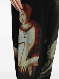 A Nightmare tapered trousers Highlights - Black/multicolour - Linen blend - All-over graphic print - Mid-rise - Belt loops - Concealed fly and button fastening - Two side slash pockets - Two rear welt pockets - Ribbed ankles Imported Composition Linen/Flax 55%, Rayon 45% SIZE & FIT Model measurements Height 6 ft 2 in(1.87 m) Bust/Chest 33.07 in(84 cm) Hips 35.43 in(90 cm) Waist 26.77 in(68 cm) FittingInformation Designed for a tapered leg, offering a loose unrestricted fit over the leg with a closer fit towards the ankle Adjust this piece’s waistband to your preference using the drawstring Made from a midweight non-stretch fabric This piece fits true to size – take your usual size Washing instructions Dry Clean Only