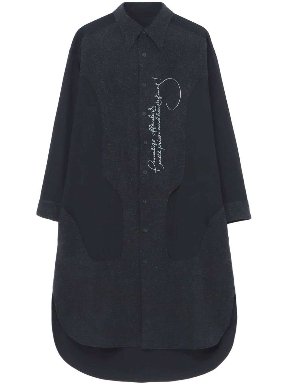 abstract-print wool shirtdress Highlights - Black - Wool - Slogan print to the front - Abstract pattern print - Classic collar - Front button fastening - Long sleeves - Buttoned cuffs - Curved hem Imported Composition Wool 100%