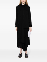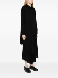 asymmetric long-sleeve shirtdress Highlights - Black - Crepe texture - Classic collar - Drop shoulder - Long sleeves - Layered details - Buttoned cuffs - Draped detailing - Calf-length - Asymmetric hem Imported Composition Rayon 100% SIZE & FIT Model measurements Height 5 ft 10 in(1.78 m) Bust/Chest 29.13 in(74 cm) Hips 35.43 in(90 cm) Waist 23.62 in(60 cm) FittingInformation Designed to be unstructured, offering a loose fit throughout Made from a midweight non-stretch fabric This piece fits true to size – take your usual size Washing instructions Dry Clean Only