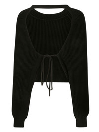 backless cropped top Highlights - Black - Wool blend - Ribbed knit - Crew neck - Open back - Adjustable strap to the rear - Long sleeves - Ribbed edge Imported Composition Wool 80%, Fabric 20%