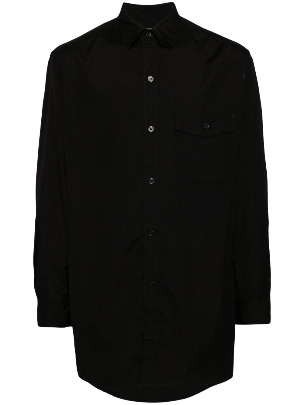 broad triple-collar shirt Highlights - Black - Cotton - Triple collars - Front button fastening - Chest flap pocket - Shirt sleeves - Whipstitch chain trim - Curved hem Imported Composition Cotton 100% SIZE & FIT Model measurements Height 6 ft 1 in(1.85 m) Bust/Chest 35.43 in(90 cm) Hips 36.22 in(92 cm) Waist 28.74 in(73 cm) FittingInformation Designed to be unstructured, offering a loose fit throughout Made from a midweight non-stretch fabric