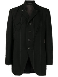 button-up long-sleeve blazer black wool blend stand-up collar notched collar front button fastening long sleeves buttoned cuffs Imported Composition Body: Wool 59%, Polyester 41% Lining: Cupro 100% SIZE & FIT Model measurements Height 6 ft 2 in(1.87 m) Bust/Chest 34.25 in(87 cm) Hips 36.22 in(92 cm) Waist 29.52 in(75 cm) FittingInformation This piece fits true to size. We recommend you get your regular size Cut for a slim fit Made with a mid-weight non-stretch fabric