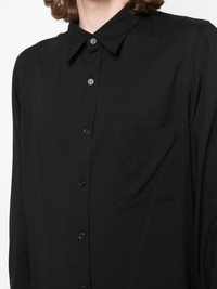 chest-pocket long-sleeve shirt black classic collar front button fastening chest patch pocket long sleeves buttoned cuffs Imported Composition Body: Cellulose 100% SIZE & FIT Model measurements Height 6 ft 2 in(1.87 m) Bust/Chest 36.22 in(92 cm) Hips 37.79 in(96 cm) Waist 28.34 in(72 cm) FittingInformation This piece fits true to size. We recommend you get your regular size Cut for a loose fit Made with a lightweight non-stretch fabric Washing instructions Dry Clean Only