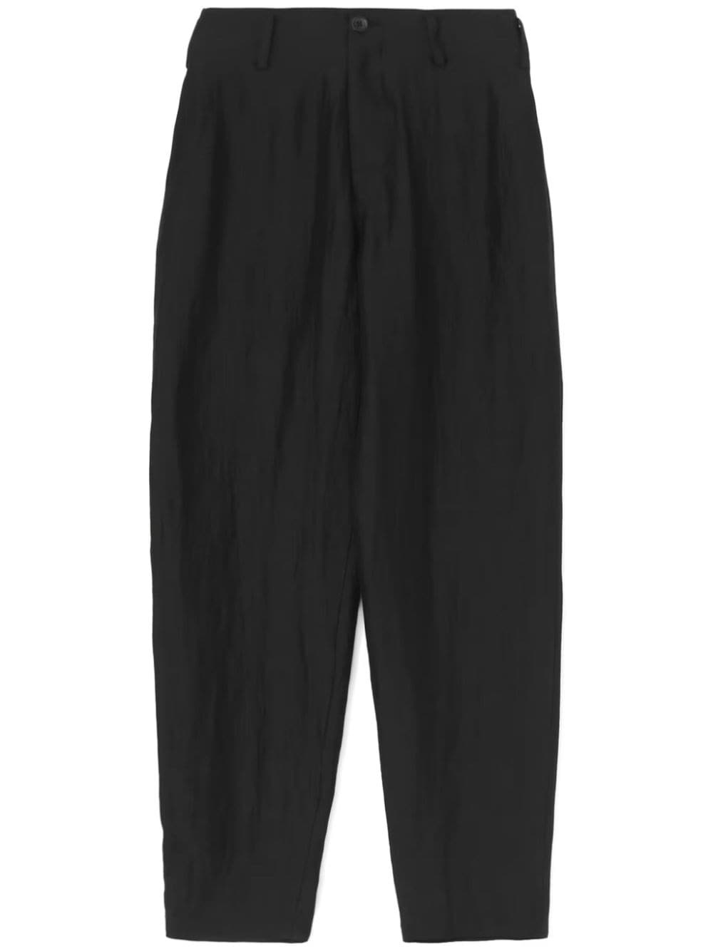 crease-effect tapered trousers Highlights - Black - Crease effect - Belt loops - Front button fastening - Two side slit pockets - Tapered leg Imported Composition Ramie 53%, Cupro 34%, Flax 13%