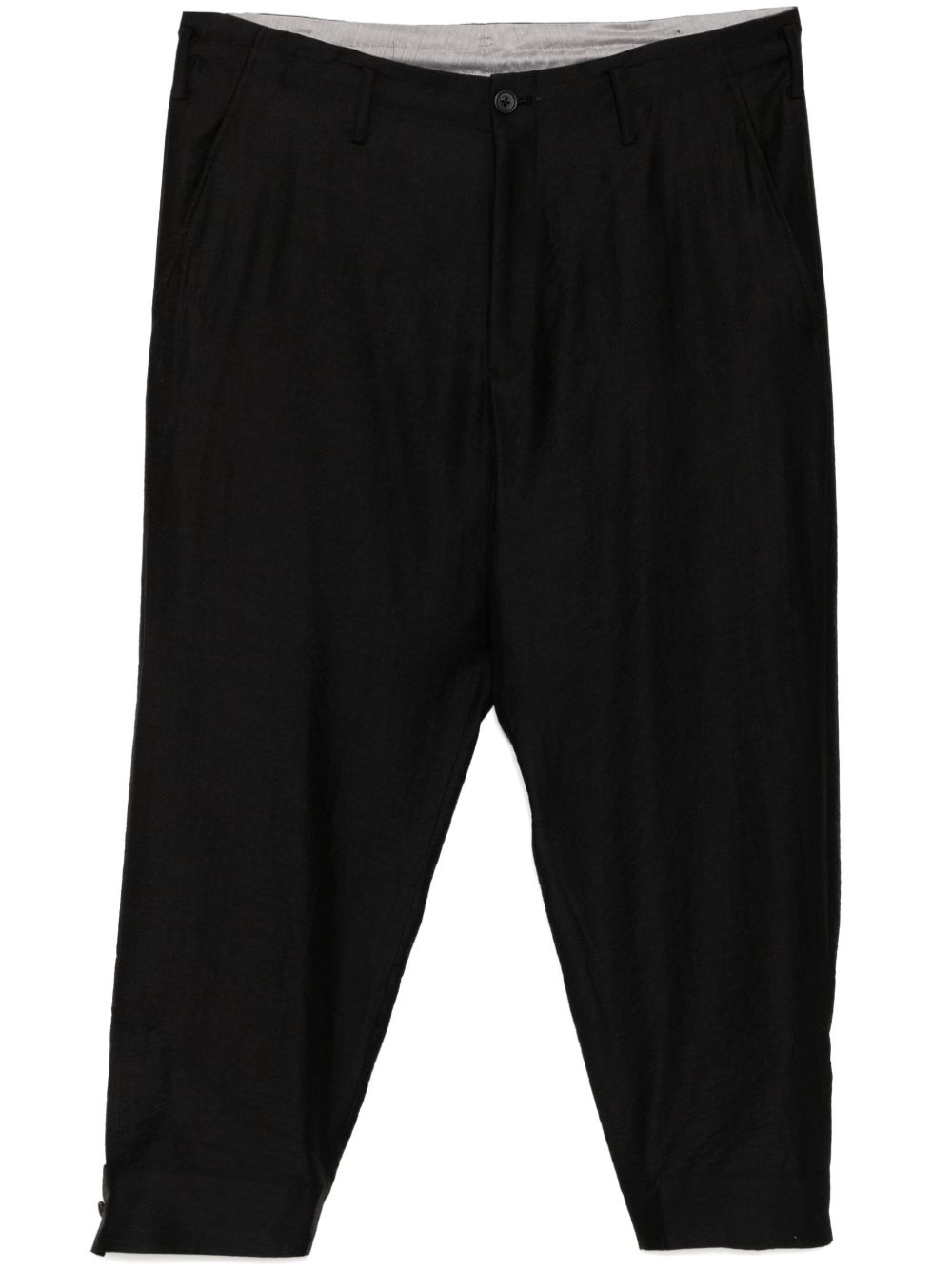 cropped trousers Highlights - Black - Front button and zip fastening - Belt loops - Two side inset pockets Imported Composition Outer: Rayon 51%, Nylon 27%, Cupro 22% Lining: Polyester 65%, Cotton 35% SIZE & FIT Model measurements Height 6 ft 2 in(1.88 m) Bust/Chest 34.25 in(87 cm) Hips 34.64 in(88 cm) Waist 26.77 in(68 cm) FittingInformation Designed for a tapered leg, offering a loose unrestricted fit over the leg with a closer fit towards the ankle Adjust this piece’s waistband to your preference using the drawstring Made from a lightweight non-stretch fabric