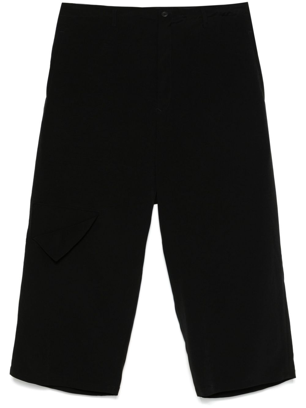 cropped trousers Highlights - Black - Concealed fly and button fastening - Two side welt pockets - Two rear button-fastening pockets - Belt loops Imported Composition Triacetate 57%, Polyester 43% SIZE & FIT Model measurements Height 6 ft 1 in(1.85 m) Bust/Chest 35.82 in(91 cm) Hips 37.79 in(96 cm) Waist 29.13 in(74 cm) FittingInformation Designed with a dropped crotch, offering a loose and relaxed fit Adjust this piece’s waistband to your preference using the drawstring Made from a lightweight non-stretch fabric