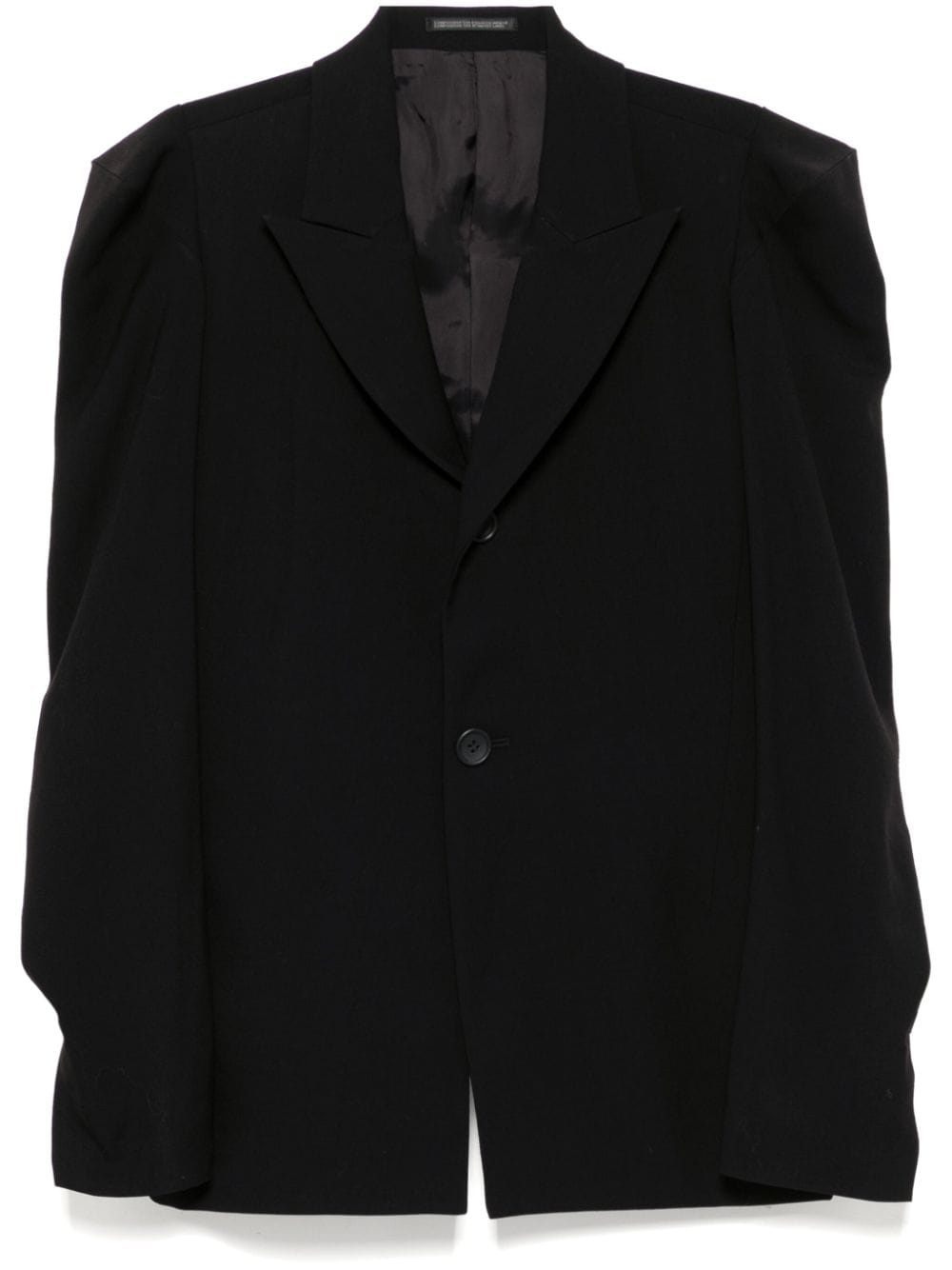damaged gabardine-sleeved gusset jacket Highlights - Black - Wool blend - Front button fastening - Gabardine sleeves - Long sleeves - Internal logo patch - Partial lining Imported Composition Outer: Wool 100% Lining: Cupro 100% SIZE & FIT Model measurements Height 5 ft 10 in(1.77 m) Bust/Chest 31.49 in(80 cm) Hips 35.43 in(90 cm) Waist 25.19 in(64 cm) FittingInformation Designed for a slim fit that sits just away from the body offering a close yet comfortable fit Made from a midweight non-stretch fabric