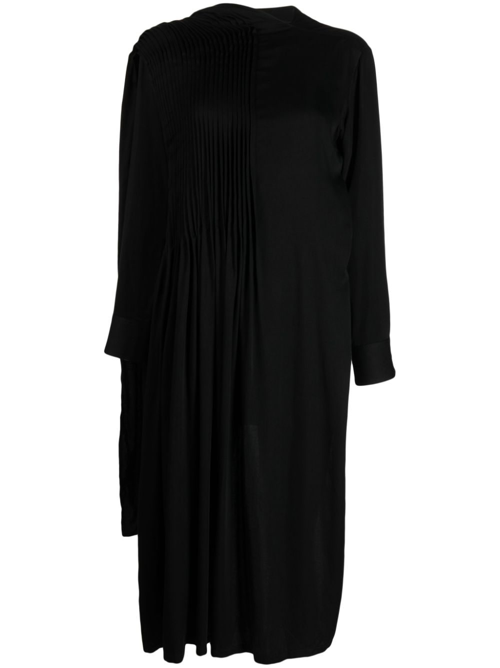 draped asymmetric midi dress Highlights - Jet black - Asymmetric design - Pleat detailing - Draped detailing - Asymmetric neck - Long sleeves - Buttoned cuffs - Asymmetric hem Imported Composition Rayon 100% SIZE & FIT Model measurements Height 5 ft 9 in(1.76 m) Bust/Chest 31.1 in(79 cm) Hips 35.03 in(89 cm) Waist 24.4 in(62 cm) FittingInformation Designed for a wraparound style that can be adjusted to your preference Made from a lightweight non-stretch fabric This piece fits true to size – take your usual size Washing instructions Dry Clean Only