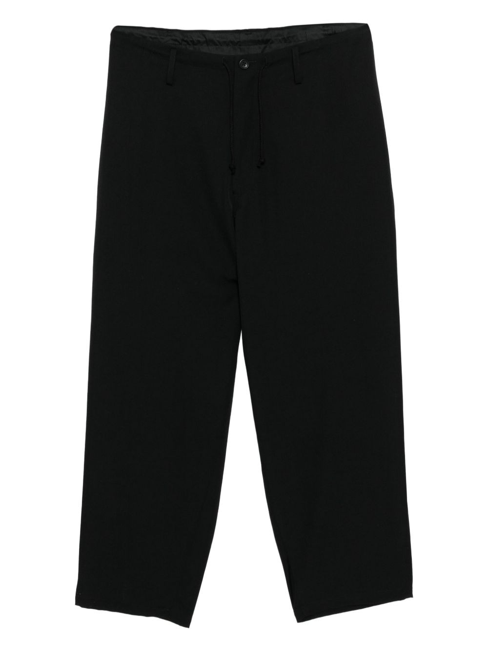 drawstring tapered trousers Highlights - Black - Concealed front zip fastening - Two side welt pockets - Two rear button-fastening pockets - Belt loops Imported Composition Wool 100% SIZE & FIT Model measurements Height 6 ft 2 in(1.88 m) Bust/Chest 34.25 in(87 cm) Hips 34.64 in(88 cm) Waist 26.77 in(68 cm) FittingInformation Designed for a tapered leg, offering a loose unrestricted fit over the leg with a closer fit towards the ankle Adjust this piece’s waistband to your preference using the drawstring Made from a midweight non-stretch fabric Washing instructions Dry Clean Only
